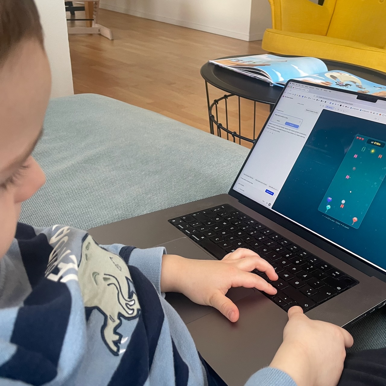This weekend, our five-year-old son really wanted us to make our own racing game and what he wanted was super clear: only stingrays (his favorite pet animal) racing each other, and they should say “oh my days” when they crash. Using a vibe coding tool, we pretty much zero-shot a working game. Amazing that you can just do this in 10min these days! You can see the result above.